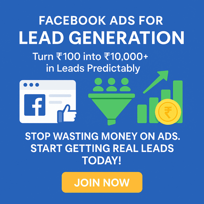 This course teaches you how to turn βΉ100 into βΉ10,000+ in leads β predictably.